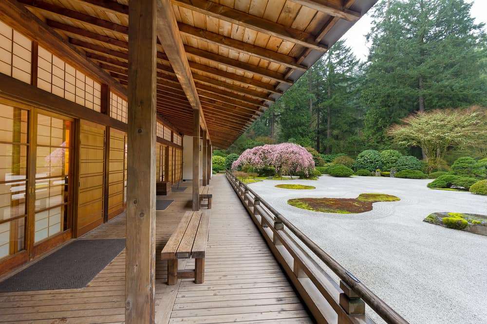 You do not need to attend a formal tea ceremony to appreciate the setting. Instead, focus on small details like the grain of the wooden teahouse walls or the way raked gravel frames the entrance. These details reward slow observation.